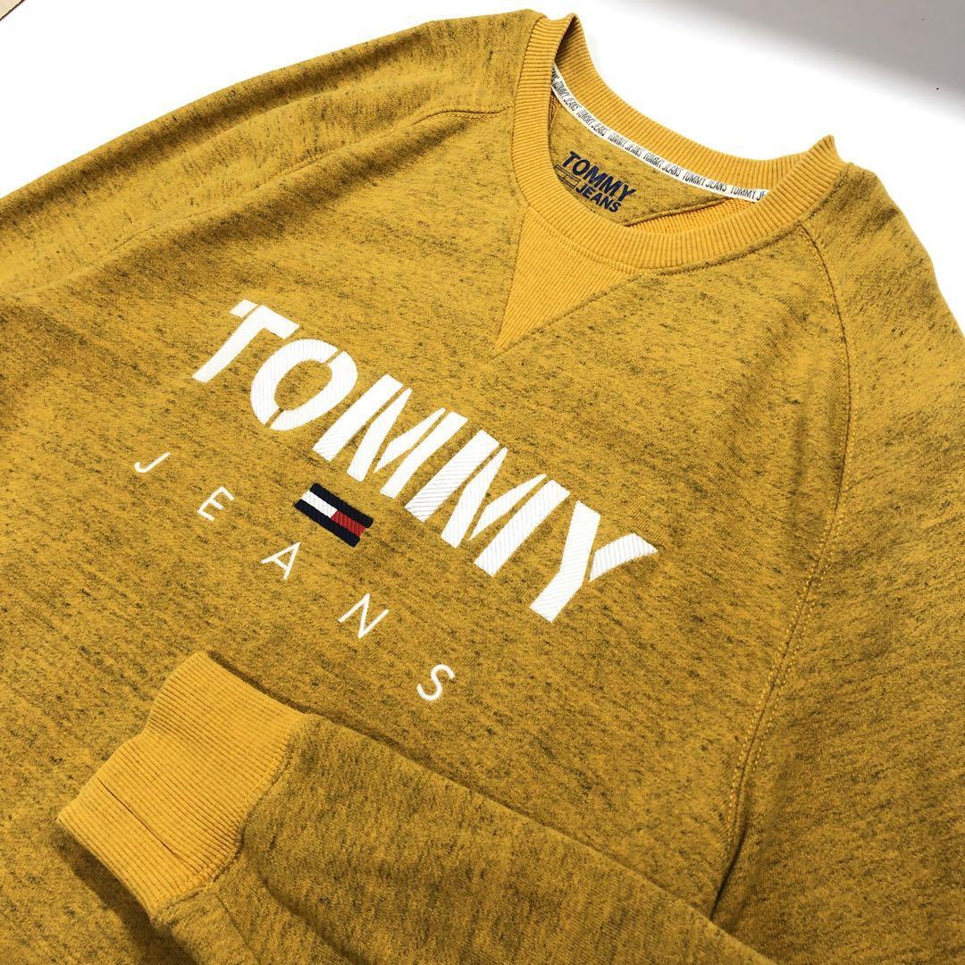 - トミージーンズ スウェット ロゴ刺繍 マスタードイエロー メンズL