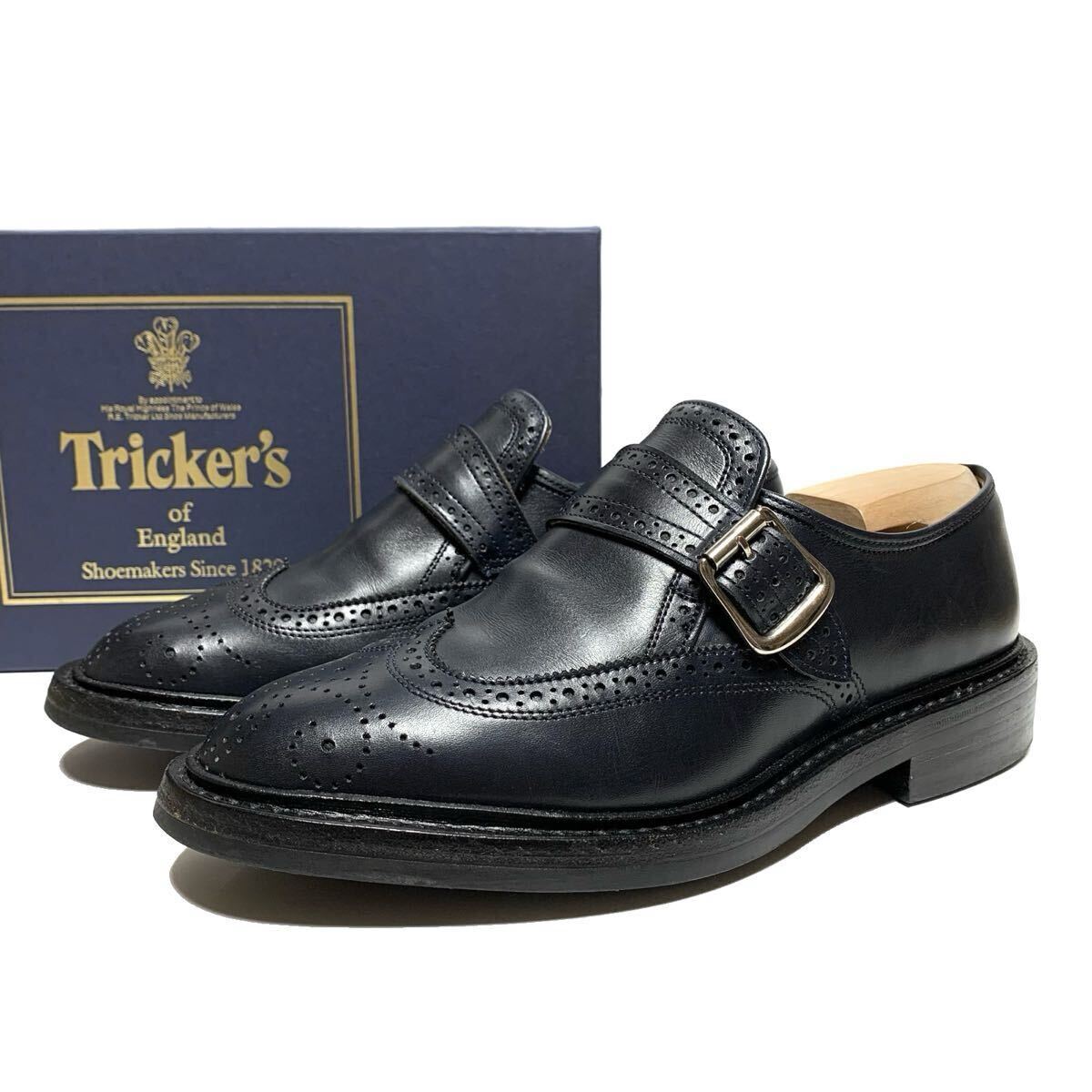 - ☆Tricker's トリッカーズ モンクストラップ レザー フルブローグ シューズ 濃紺 size 6.5 英国製 革靴 ドレスシューズ カントリーブーツ