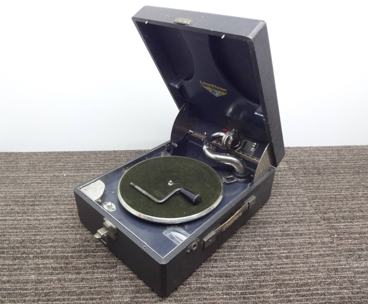 - ポータブル蓄音機 蓄音機 Line Phone ゼンマイ動作品 詳細不明