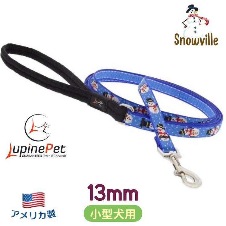 > スノービル柄 13mm幅180cmリード パッド付き LUPINE アメリカ製 軽量丈夫 小型犬向け ルパイン Snowville