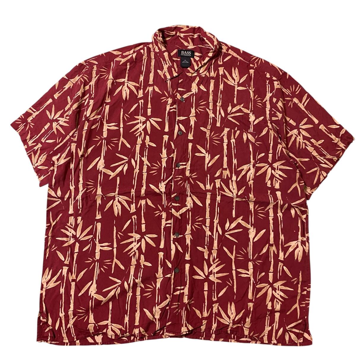 - アメリカ古着 BASS シルク アロハシャツ 竹柄 バンブー ハワイアン XLサイズ 【AL320】