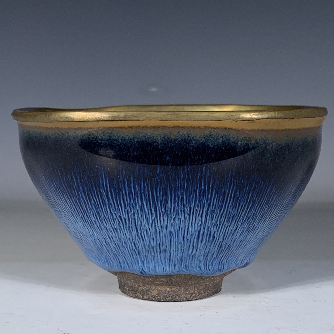 - 唐物 宋 建窯 包口藍兔毫四方盞 陶芸 古陶磁器 中国磁器 極細工 中国古玩 骨董品 古美味 D68