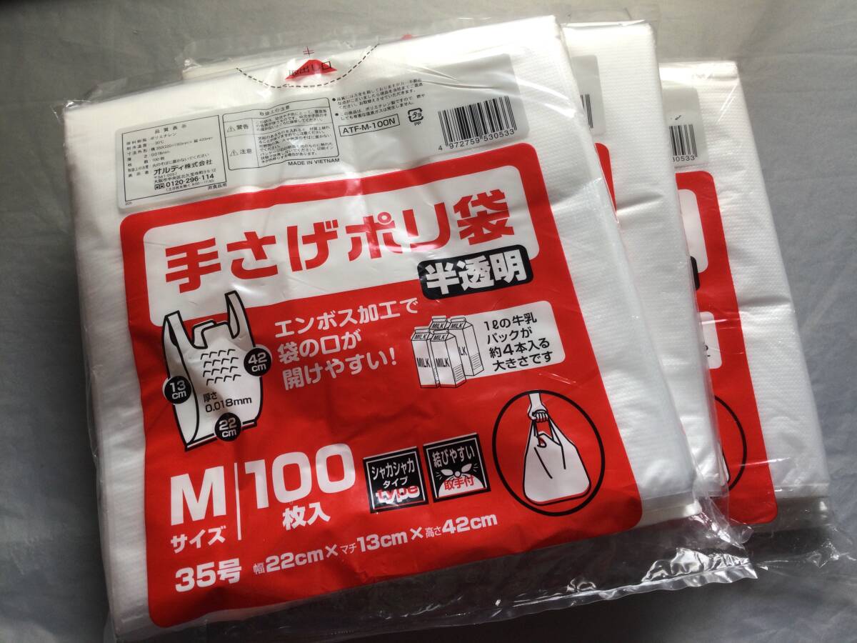 - 【未使用品】手さげ ポリ袋 Mサイズ 300枚 100枚×3個 とって付 レジ袋 ゴミ袋 買物袋 35号 手提げ 取っ手つき ビニール袋 ビニル袋