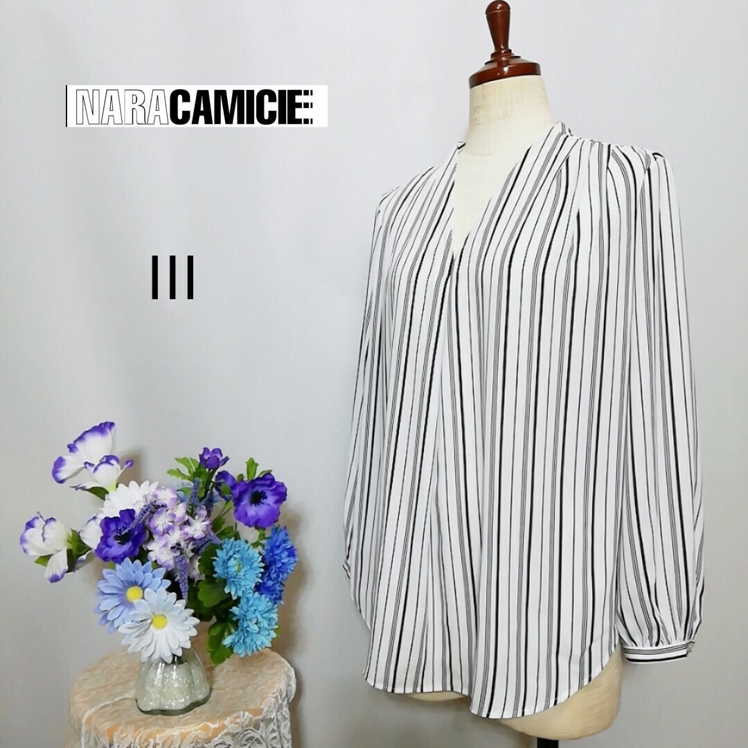 - 極上美品 ナラカミーチェ 長袖ブラウス ストライプ柄 LLサイズ