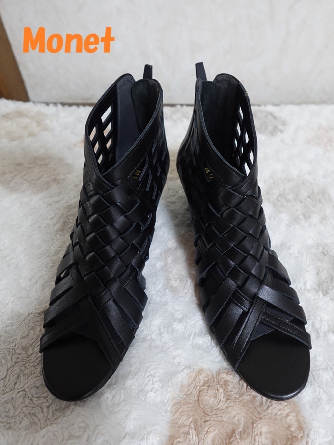 - 新品☆Monet 本革 サンダルブーツ 24.5 3E 黒
