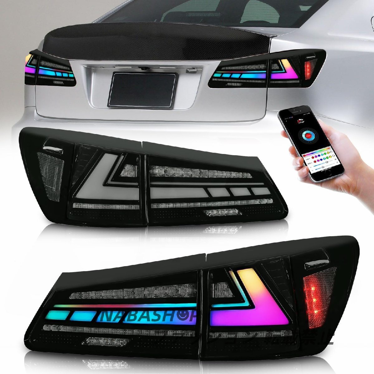 > レクサスISテールランプ IS250 IS350 GSE20 ISF RGB機能、流れるウインカー テールライトスモークレンズ 2005-2013年