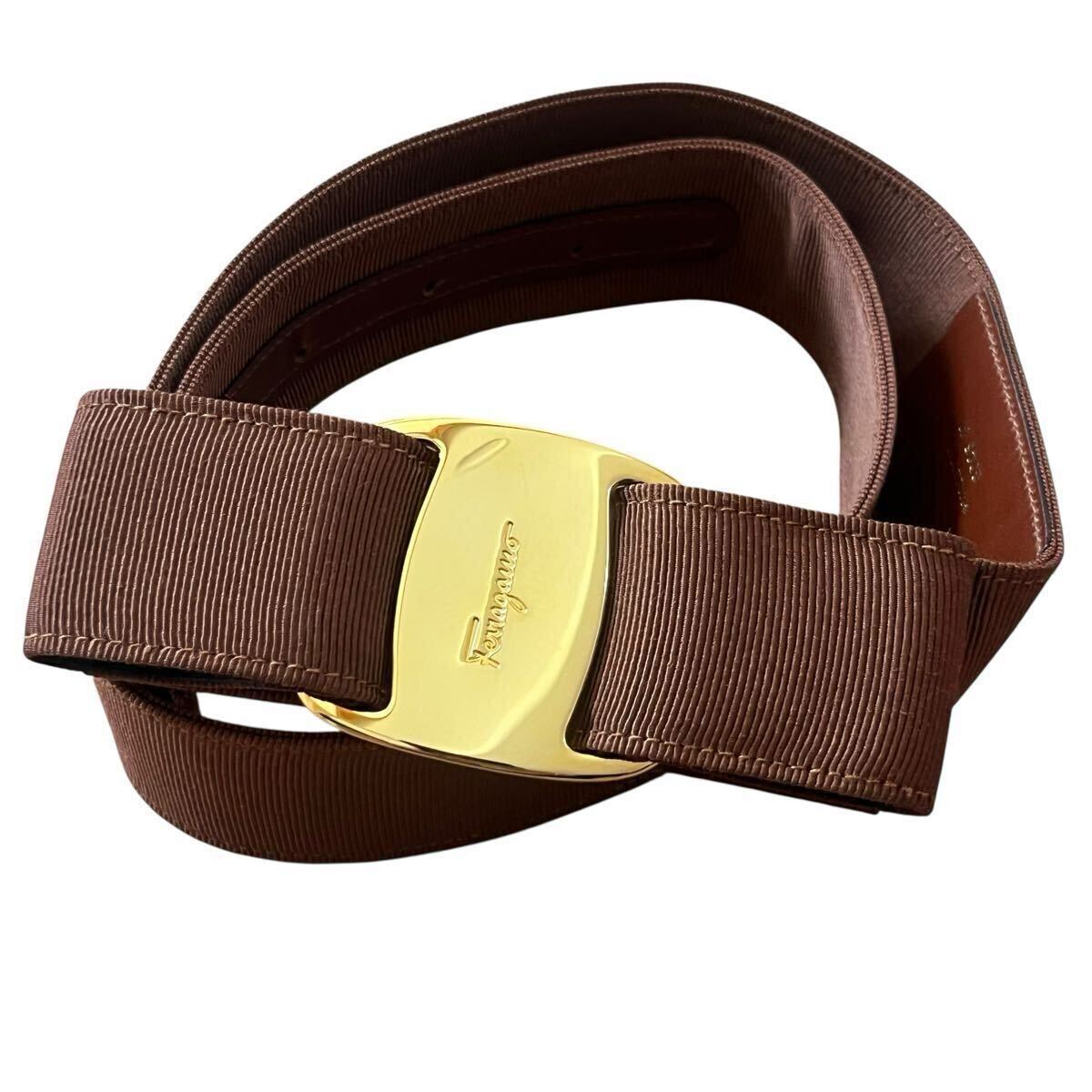 - 美品 Salvatore Ferragamo フェラガモ ヴァラ ベルト リボン Mサイズ ウエストマーク ブラウン イタリア製