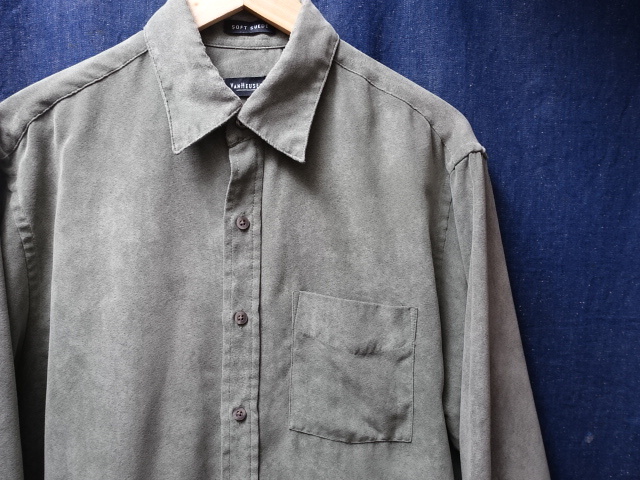 > USA アメリカ 古着 ビンテージ 90'S VAN HEUSEN 長袖 フェイク スウェード 無地 ポリエステル シャツ M / ヴィンテージ 90S / 90
