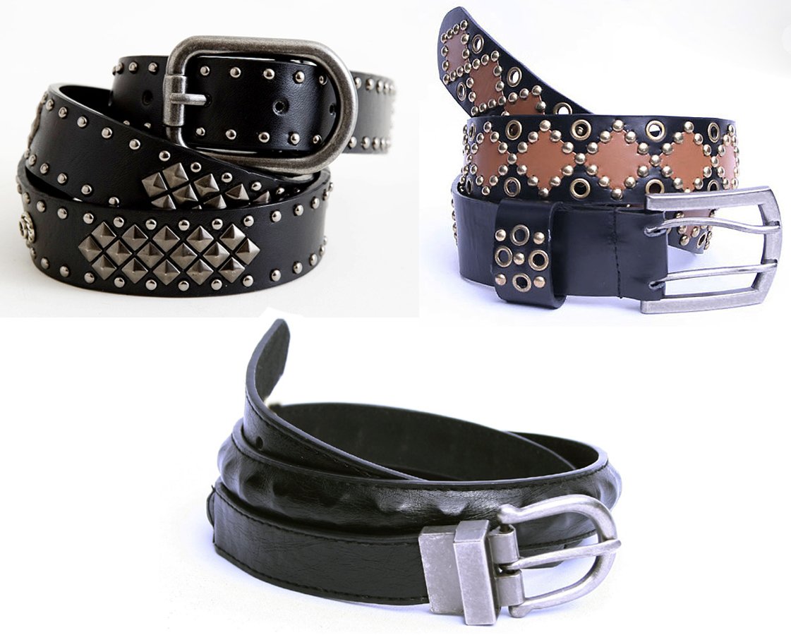 > まとめ売り 3点セット ベルト スタッズベルト 鋲ベルト シンプル パンク ロック メンズ スタッズ 鋲 ウルフズヘッドタイプ HTCタイプ BLT02