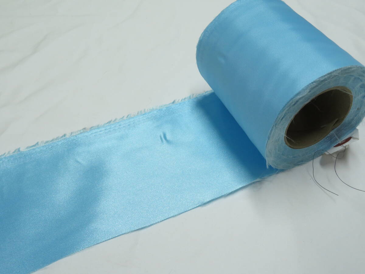 > はぎれロールリボン (ST-02) サテン 無地 薄い 水色 約8㎝幅×約25m 布 生地 ワンポイント ドール 人形 服 ドレス 安い ハギレロール
