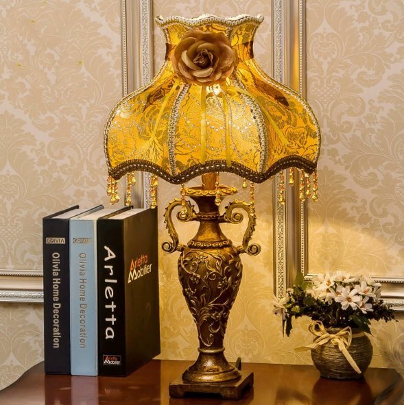 - 洋式復古の電気スタンド寝室結婚のお祝いアメリカ式の布芸の電気スタンド結婚の部屋の応接間のアンティークのナイトテーブルのランプをまね