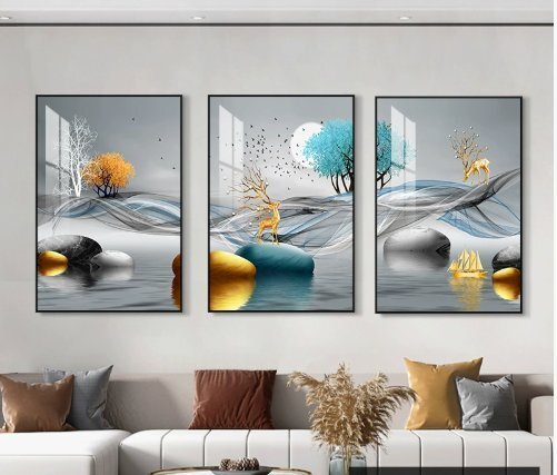 - 北欧の居間の装飾の絵三連ソファの背景の壁の掛け絵現代のシンプルな大気のレストランの壁画寝室の壁の絵です