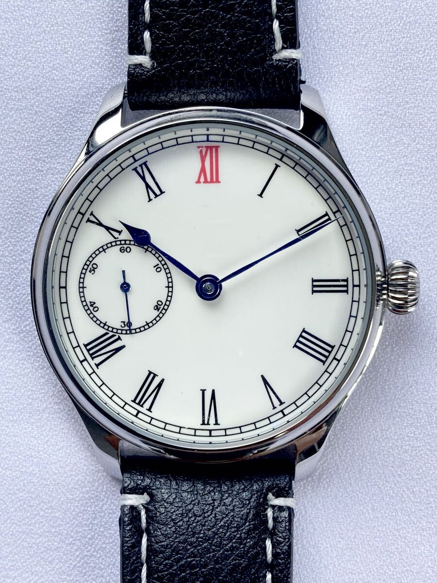 - ローマ数字 機械式 手巻き アンティーク風 スモセコ 裏スケ 赤12