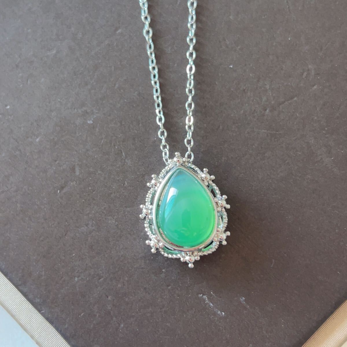 - ◇緑瑪瑙◇グリーンメノウ◇ネックレス◇ペンダント◇水滴形◇天然石◇パワーストーン◇巾着袋付き◇プレゼントにも039P8146