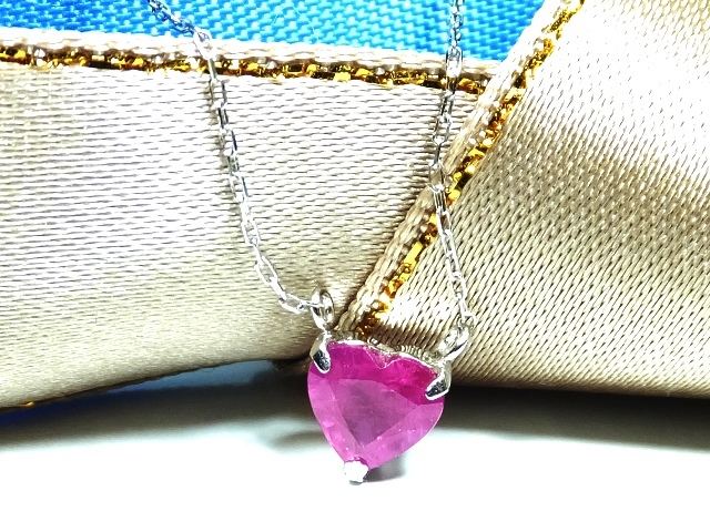 - 403.3◎7月の誕生日 誕生石/牡羊座 獅子座の星座石/人気 プレゼント◎K18WG ホワイトゴールド ハート形 ルビー ネックレス ジュエリー 通販