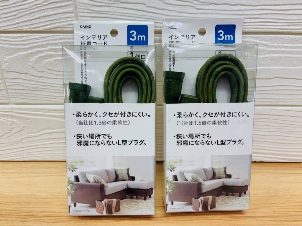 - A312 新品 CAINZ カインズ 2個セット 3m 1個口 柔らかくくせがつきにくい 狭い場所でも邪魔にならないL字型プラグ グリーン