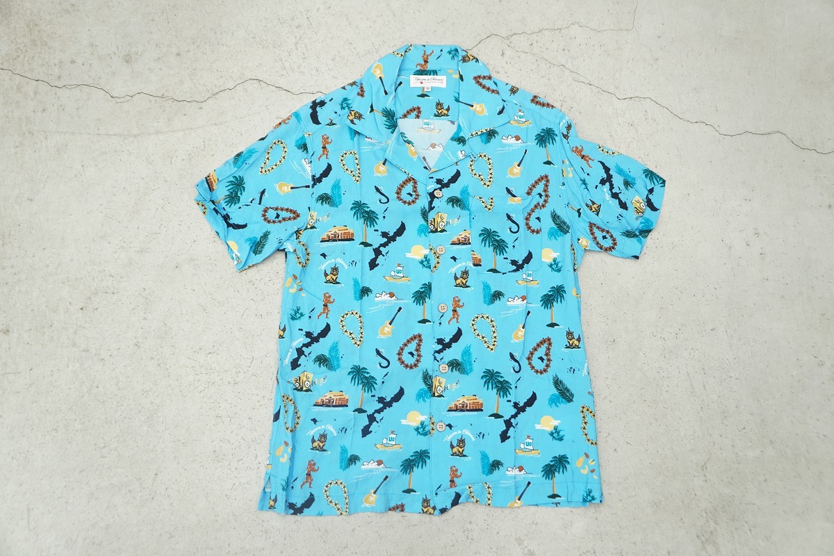 > UNICARN IN OKINAWA 奥田民生 ユニコーン半袖 アロハ シャツ 100周年ツアー 百が如く 沖縄限定 アロハが如く 青925P★2