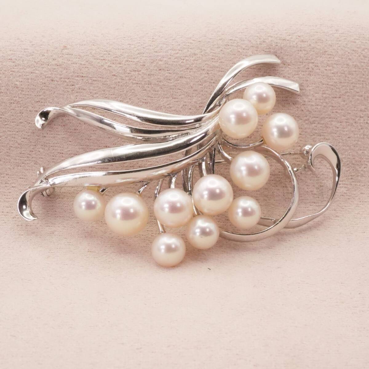 - ミキモト シルバー パール リボン ブローチ/24-2720S