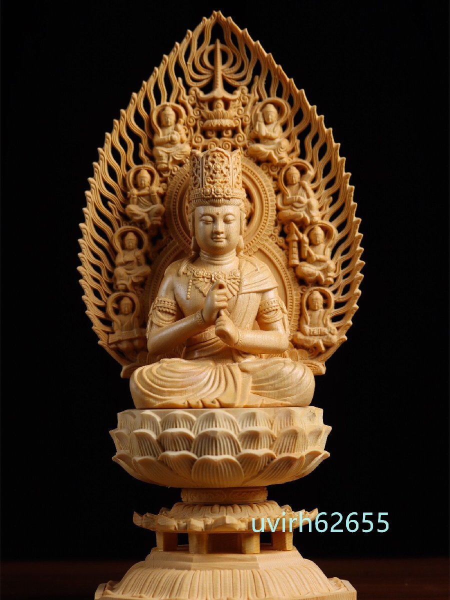 - 極上品★ 仏教美術 精密彫刻 仏像 手彫り 木彫仏像 大日如来座像 高さ約28cm