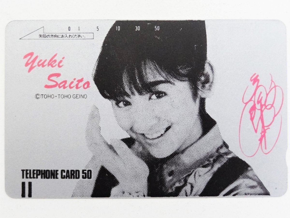 - レア 未使用 斉藤由貴 50度数 テレホンカード 銀箔 サイン印刷 シルバーカラー アイドル テレカ コレクション ○P