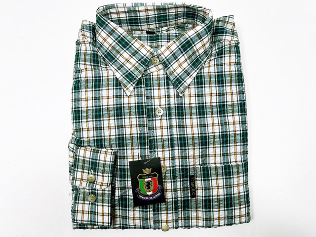 > 41256-1-a41-2 グリーンチェック Mサイズ 3790円 FRANCO COLLEZIONI サッカー織ロールアップシャツ 綿100%