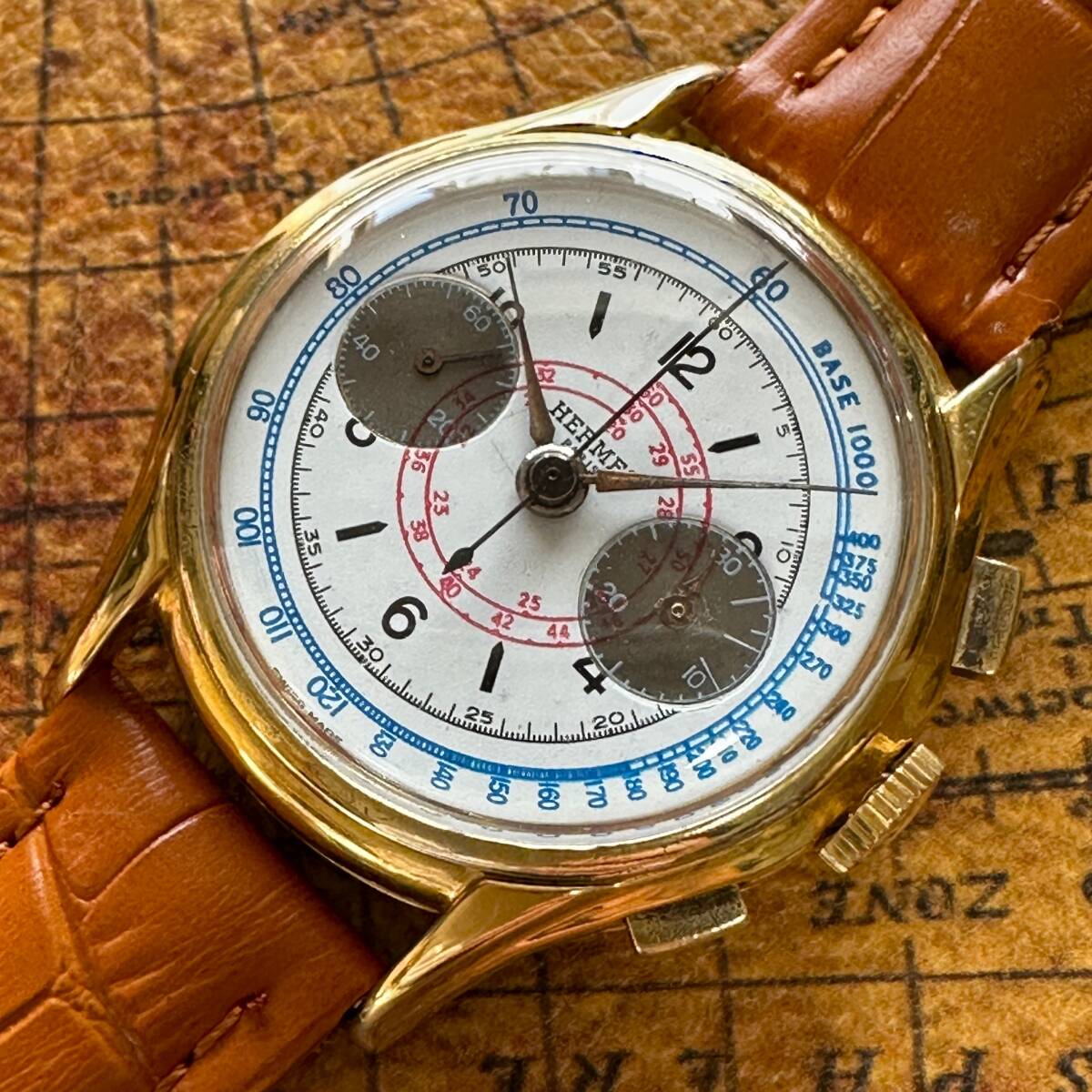 > OH済【エルメス クロノグラフ ゴールドプレート】20世紀半ば★アンティーク時計 ビンテージ時計 ヴィンテージ時計 メンズ★手巻き★1375