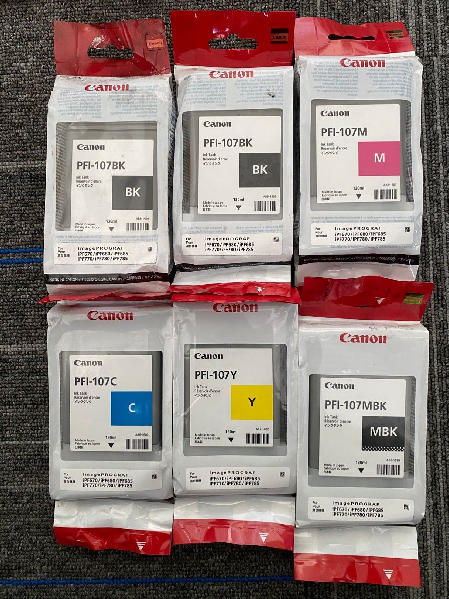 > ★未開封★純正未使用Canonキャノン インクタンクPFI-107C PFI-107Y PFI-107BK PFI-107M PFI-107MBK 6点セット★X788
