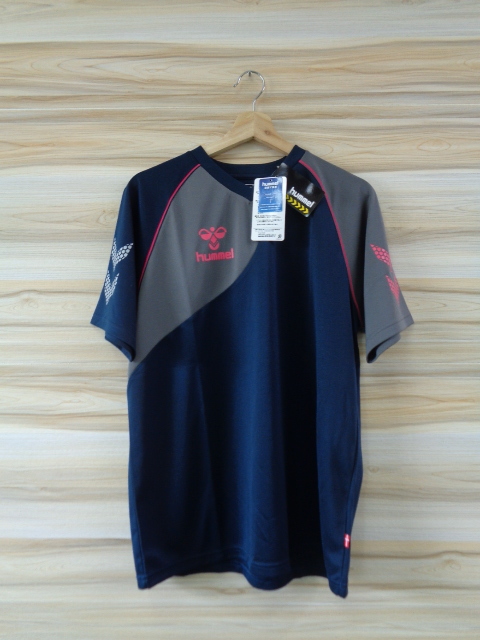 > 4202 hummel ヒュンメル メンズ スポーツTシャツ 半袖 ネイビー タグ付き Lサイズ