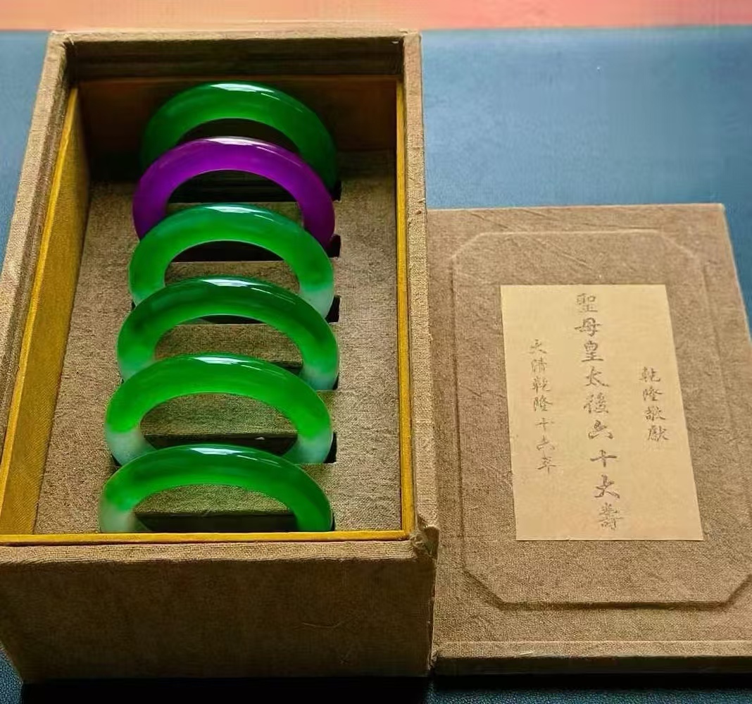 > 清代・老玉 秘藏乾隆年制ボックス 帝王緑の腕輪 ひすい色 6条 唐物 古玉彫 天然石 稀少珍品 古美術 古賞物 古置物 旧蔵 8.16