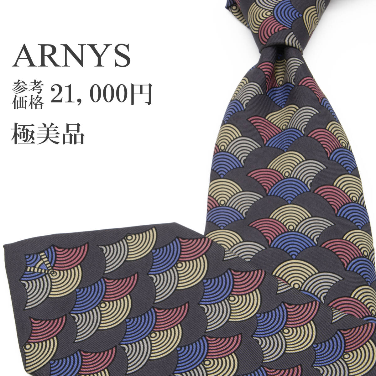 > 送料無料 アルニス ネクタイ レギュラータイ シルク グレー 青 ピンク ベージュ 青海波 円 丸 サークル 扇型 ブランド 珍しい 綺麗 P387