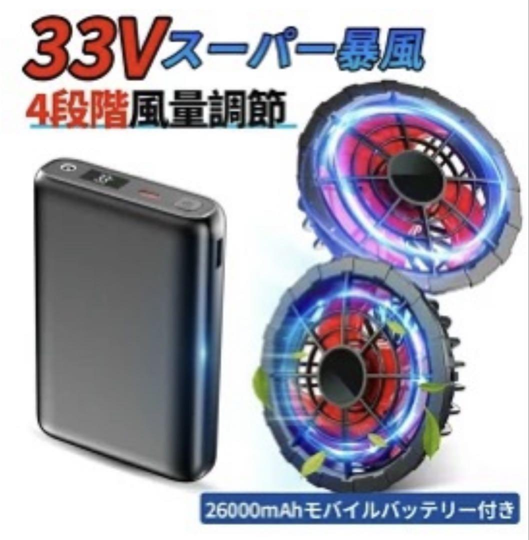 > 空調作業服 ファンバッテリーセット 33V 超高出力 2025最新 26000mAh/96.2Wh大容量 日本製ブラシレスモーター 暑さ対策 釣り 男女兼用