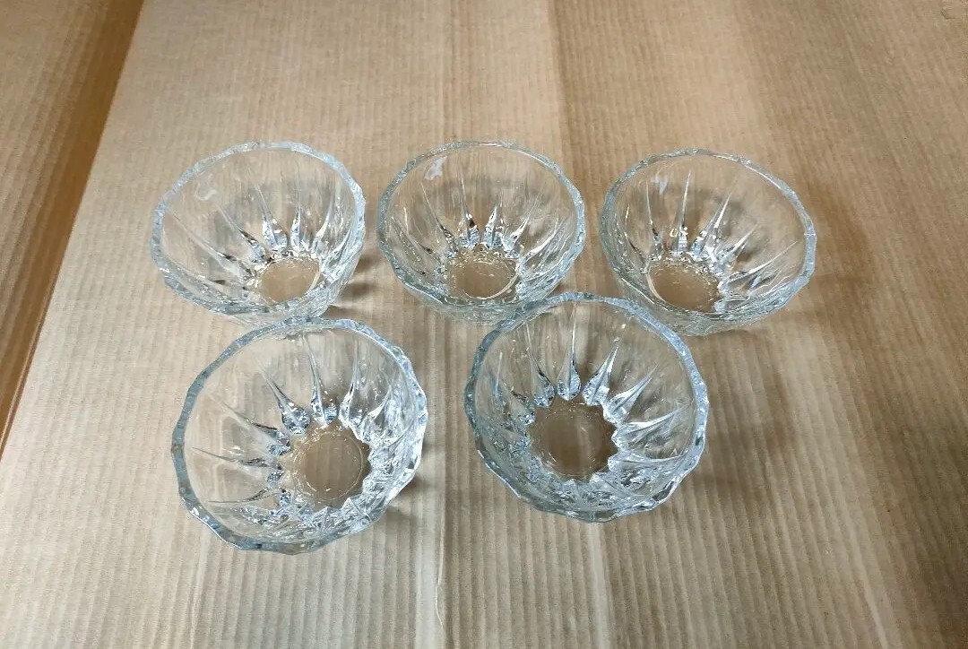 - ●昭和レトロ 円形 透明 グラスセット5点 昭和レトロ ガラス鉢 ガラス
