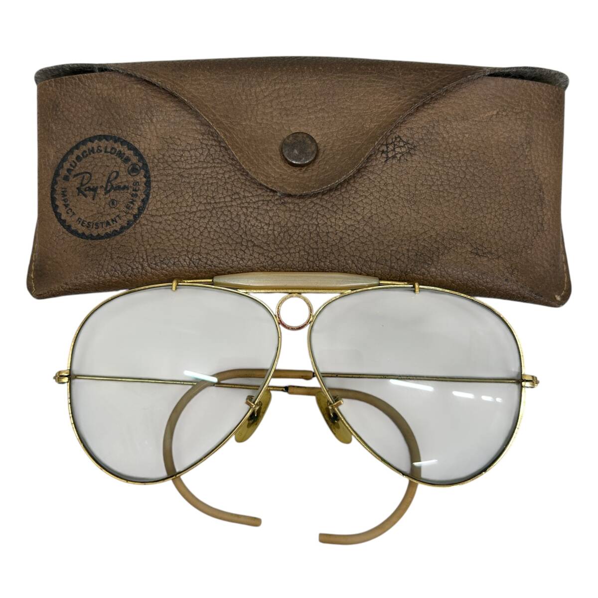 > ◎中古品◎Ray-Ban レイバン サングラス シューター ボシュロム クリアレンズ ゴールド×ベージュ系 ティアドロップ ケース付 I1061COA