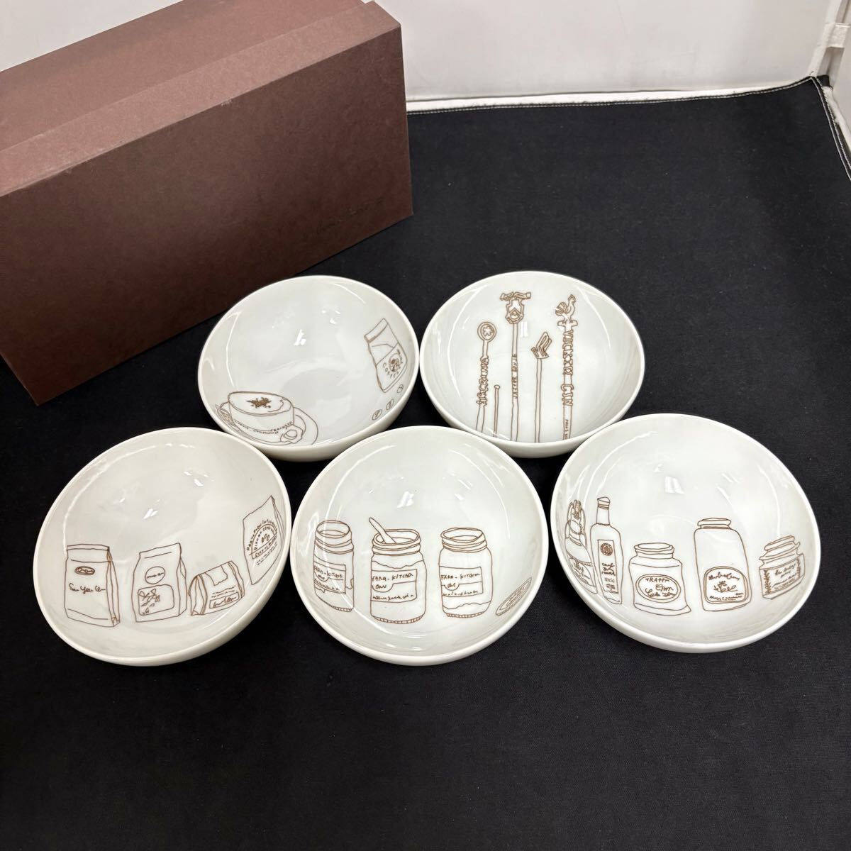 - 未使用 前畑陶器 チョコレート ファイブボールセット 5客揃 サラダボウル 多用鉢 小鉢 美品 (08177E