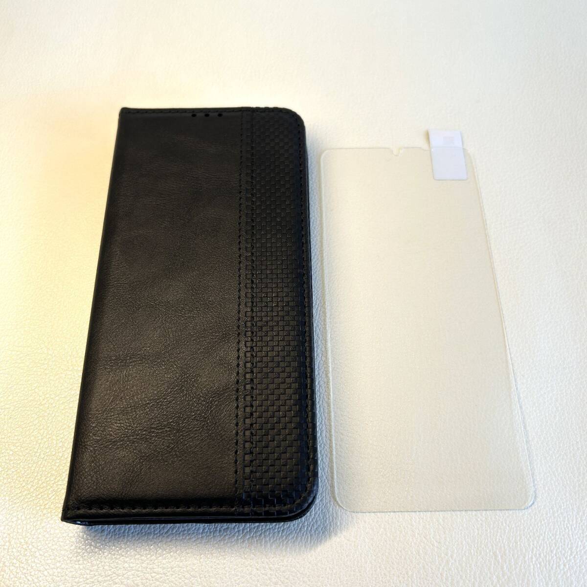 - 【2点セット】AQUOS wish4 SH-52E SH-M27 レザーケース ブラック+画面ガラスフィルム 画面保護ガラス アクオス ウィッシュ