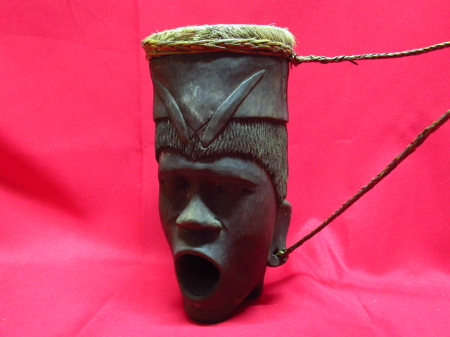 - 民族楽器 打楽器 太鼓 顔面 全長約31cm 鼓面約16cm 管理6J0218A-G4