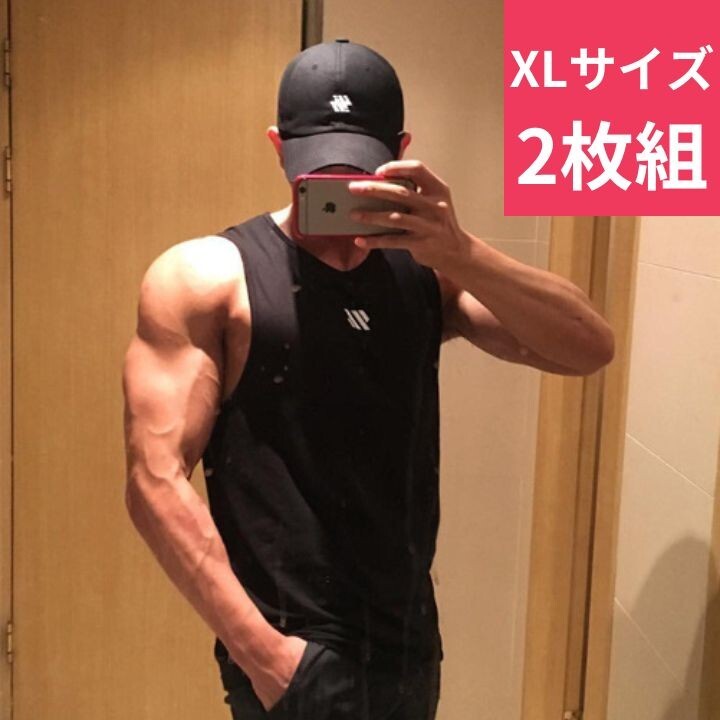 - 2枚組 タンクトップ メンズ 筋トレ XL スポーツジム 吸汗速乾 トレーニング