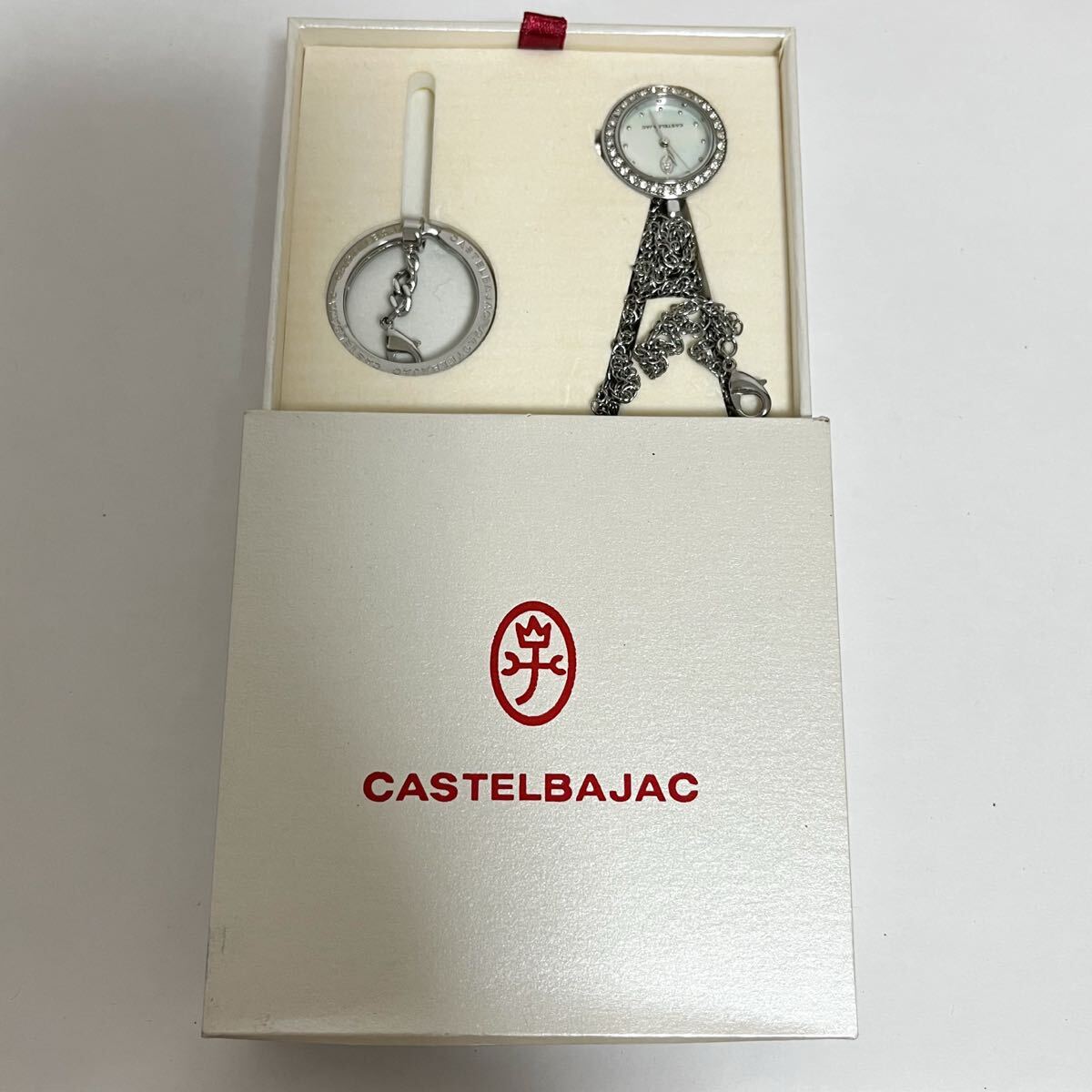 - 和822★ 箱付き CASTELBAJAC カステルバジャック クォーツ ネックレス キーホルダー 時計 ウォッチ 3針 シェル レディース