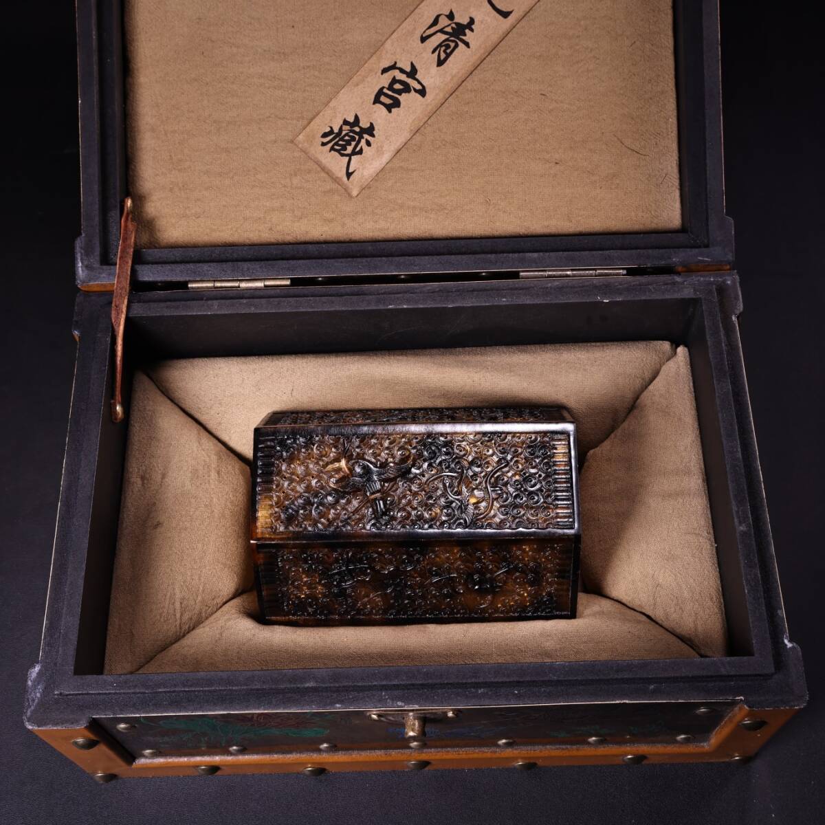- 清代 宮廷御藏 玳瑁 鏤空 筆筒 文房具 箱付 首飾 時代物 古董品 骨董 旧家蔵出 唐物 中国古玩 古美術品