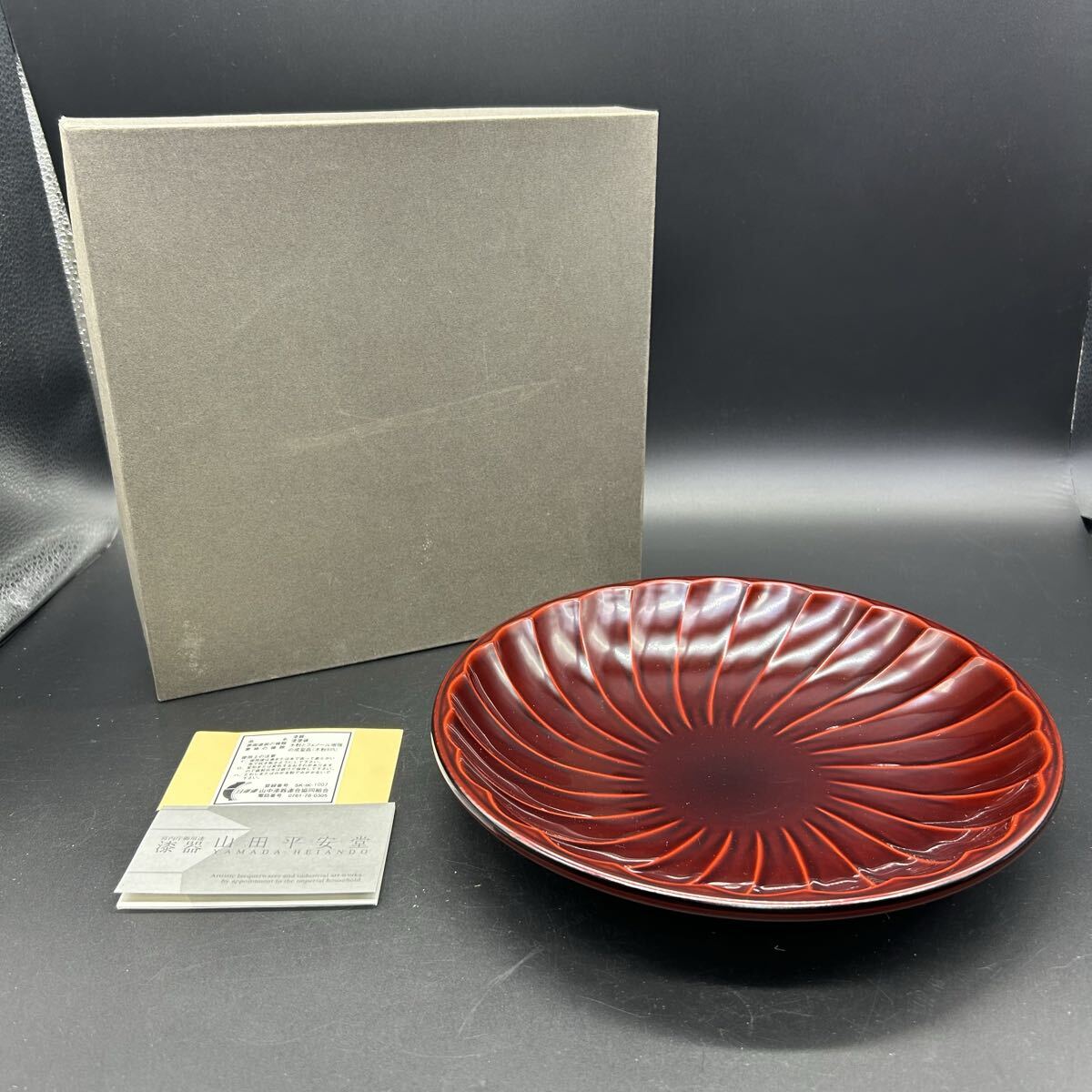 - 山田平安堂 菊皿 古代朱 菓子器 菓子鉢 漆器 エ30