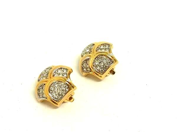 > ■美品■ NINA RICCI ニナリッチ ラインストーン クリップ式 イヤリング アクセサリー レディース ゴールド系×シルバー系 DH5540