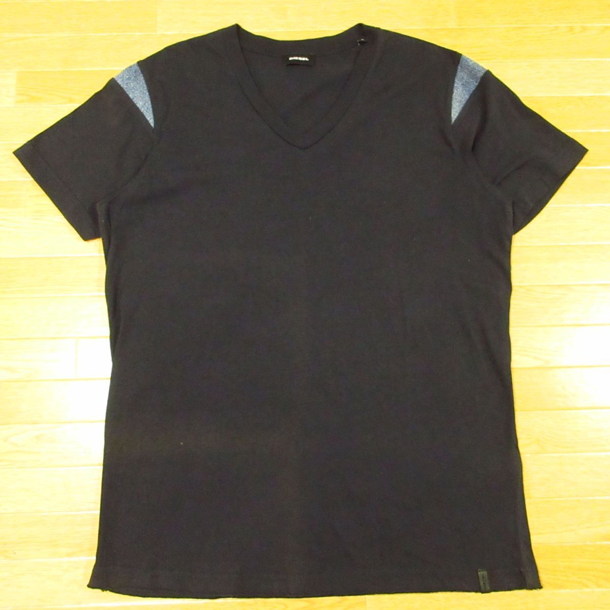 > ◎使用少なめ!DIESEL ディーゼル 袖デニム切り替え Tシャツ Vネック メンズ 黒 ブラック Sサイズ◆AA4173