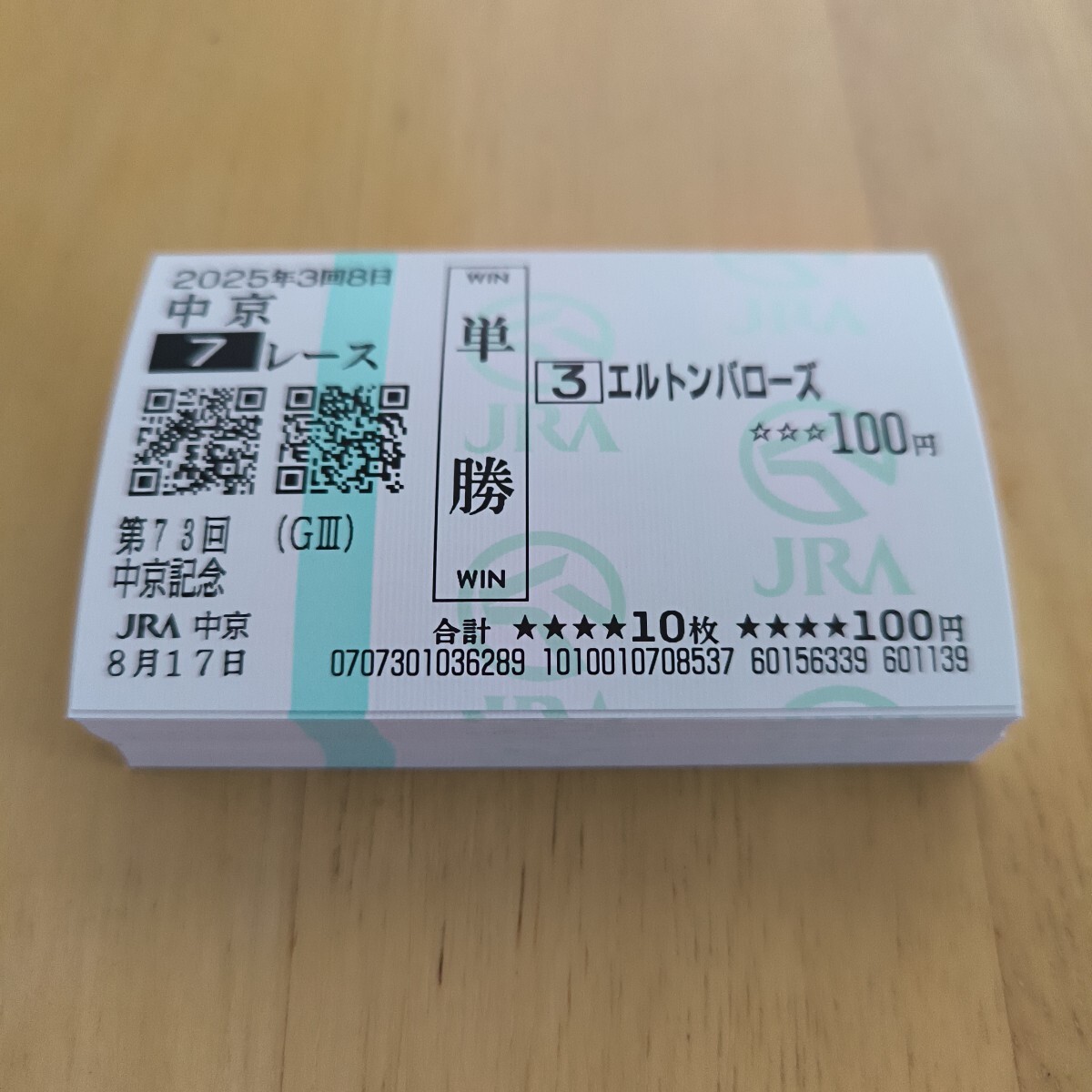 - エルトンバローズ 第73回中京記念 現地単勝馬券98枚