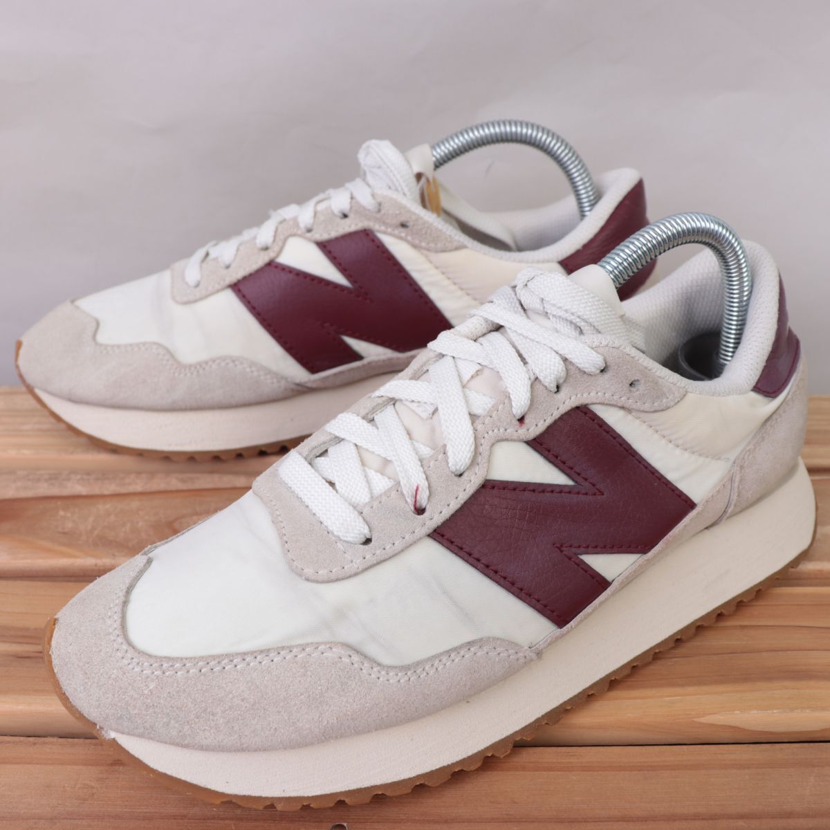 > z1205【MS237SB】ニューバランス US7 25.0cm/白 ホワイト 赤系 エンジ ライトグレー newbalance メンズ ユニセックス スニーカー 中古