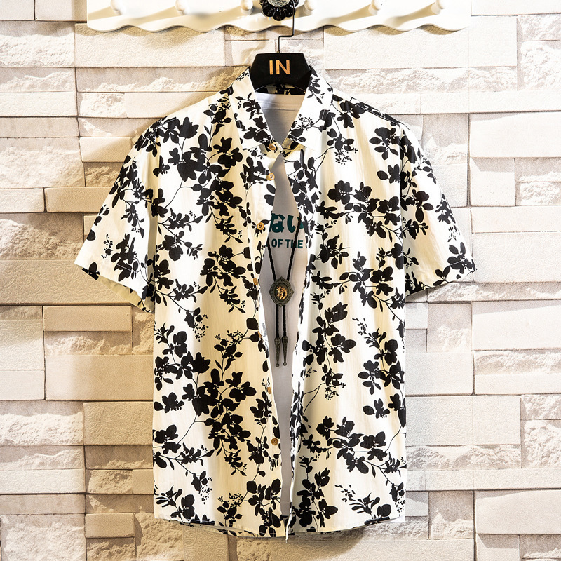 > シャツ 花柄 半袖アロハシャツ 夏 メンズ ハワイアン 総柄 半袖シャツ 薄手 カジュアルシャツ 涼しい 大きいサイズ白 M~5XL