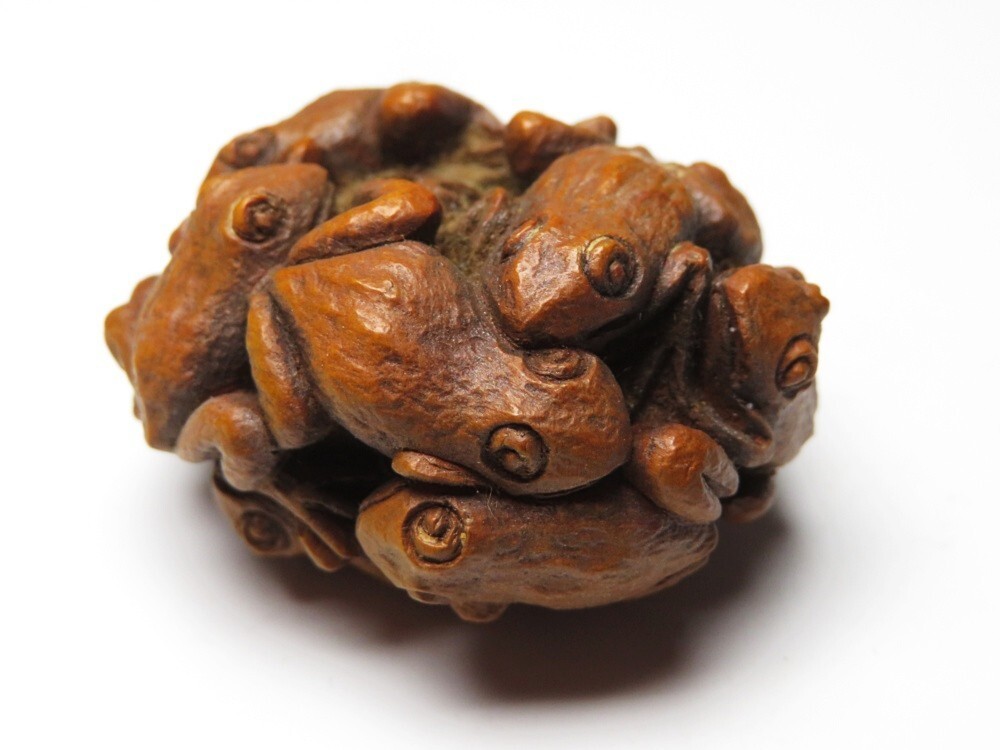 - 【11415】明治期 堤物 木製 蛙 根付(初品・買取品)