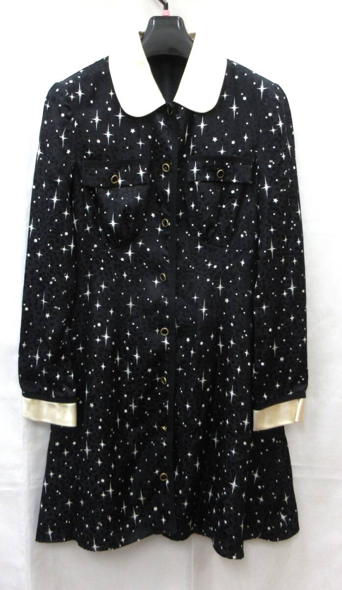 - MIU MIU ミュウミュウ スター柄 シルク 切り替え 長袖 ワンピース 36 ブラック 黒 (110)a