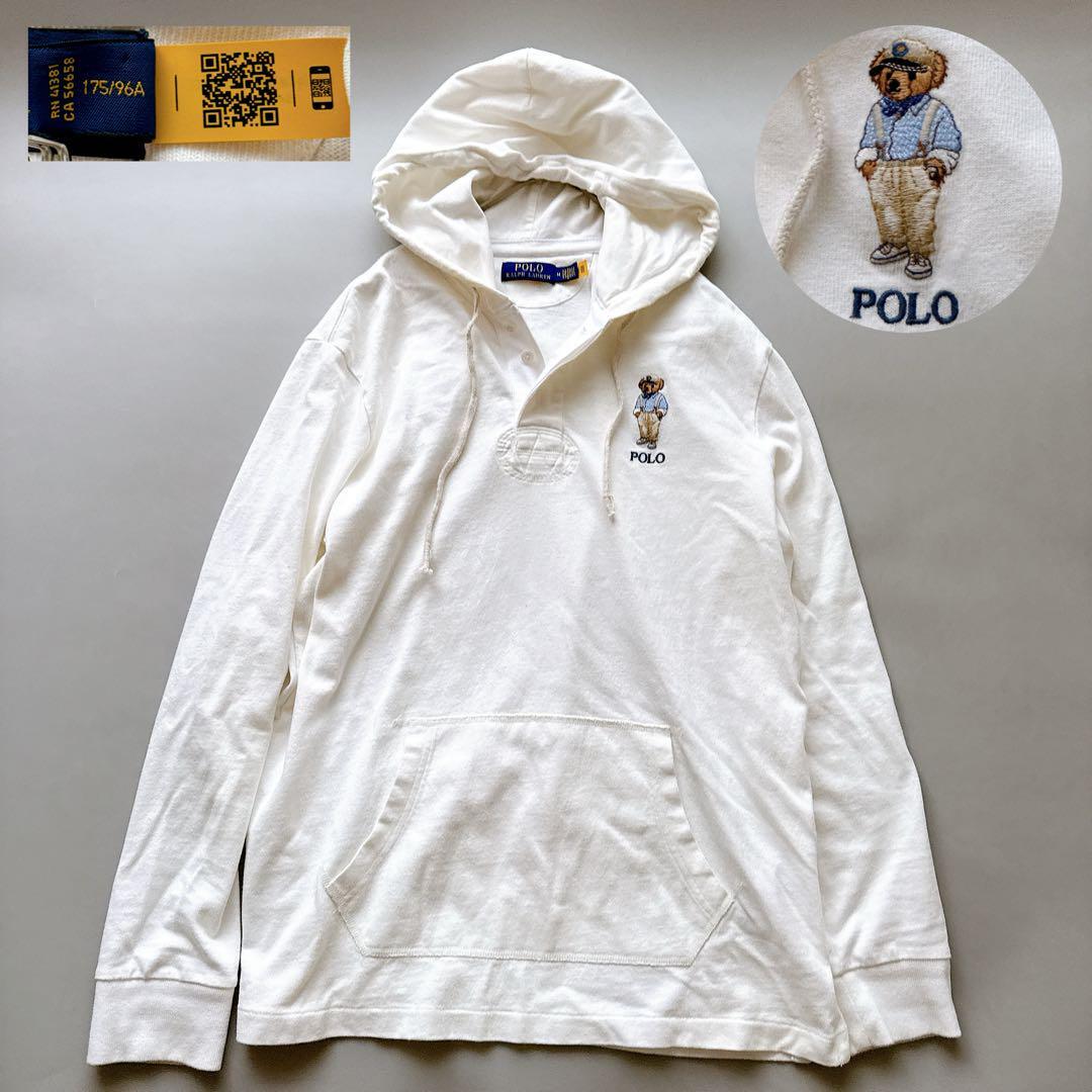 > 現行QRタグ POLO RALPH LAUREN ポロラルフローレン ポロベア刺繍 スウェットパーカー Mサイズ スウェット プルオーバー ワンポイント