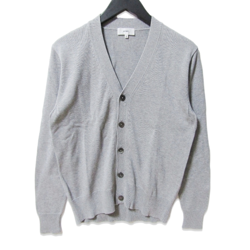 > 美品 HYKE ハイク カーディガン コットンニット SWEATER CARDIGAN Vネック レディース グレー 1 27110864