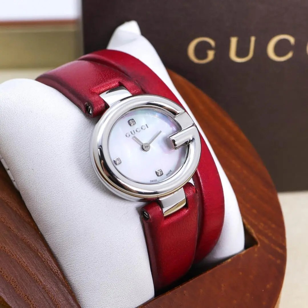 - 稼働 GUCCI 腕時計 134.5 Gロゴベゼル シェル文字盤 レザー1905